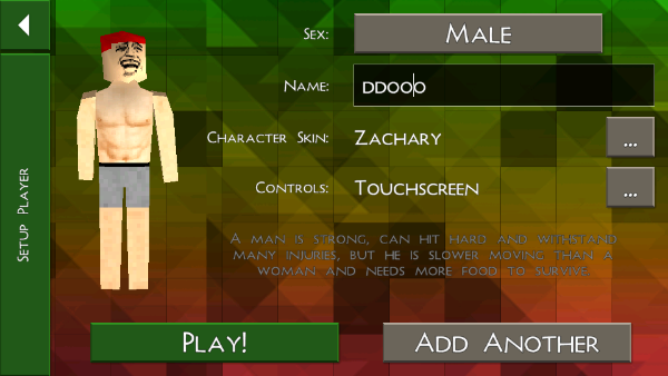 創建的角色,我們可對其的服飾、名稱等進行自定義設置,確定無誤后點擊“play”,如果想體驗雙人或更多模式時點擊“add another”創建更多的角色。