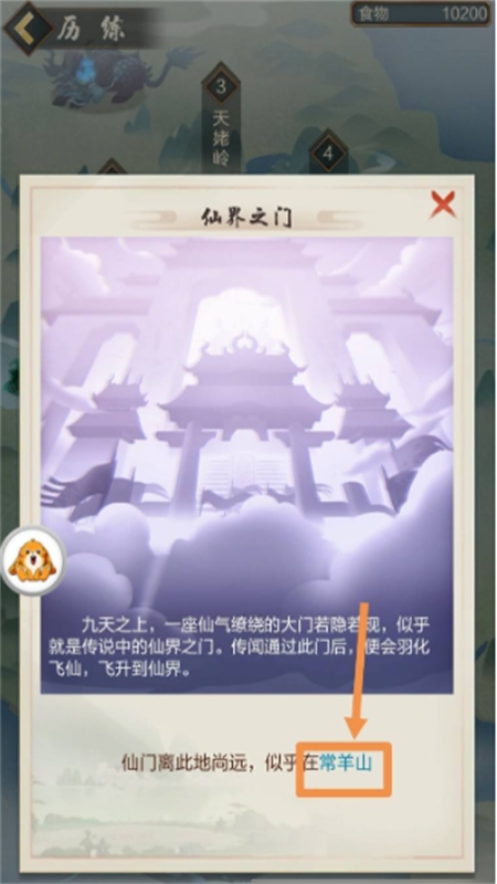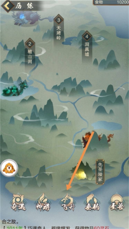 在歷練地圖上找到常羊山,通關后即可飛升。