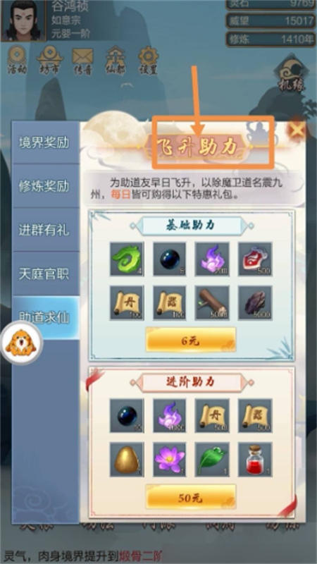 如圖即可購買飛升助力道具,選擇合適的道具即可。