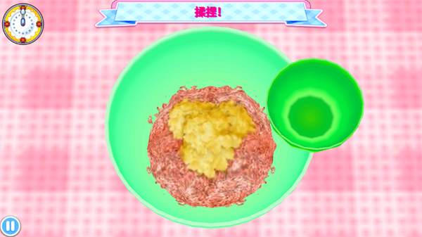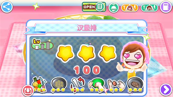 每一步都有時間限制,而有的步驟還有成功次數的要求。漢堡排中塑形這一個步驟就是要求大家完成三次才可以,在實際制作當中,時間到的時候完成幾個就能獲得幾顆星星的評價。
