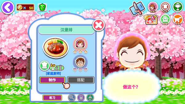 點擊制作漢堡排,讓爸爸可以品嘗到美味。