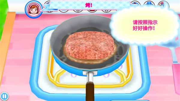 首先不管我們做什么料理,都需要按照步驟來,而每一步都是按照順序制定好的,比如做漢堡排的時候第一步就是切洋蔥,按照提示來操作就可以了。