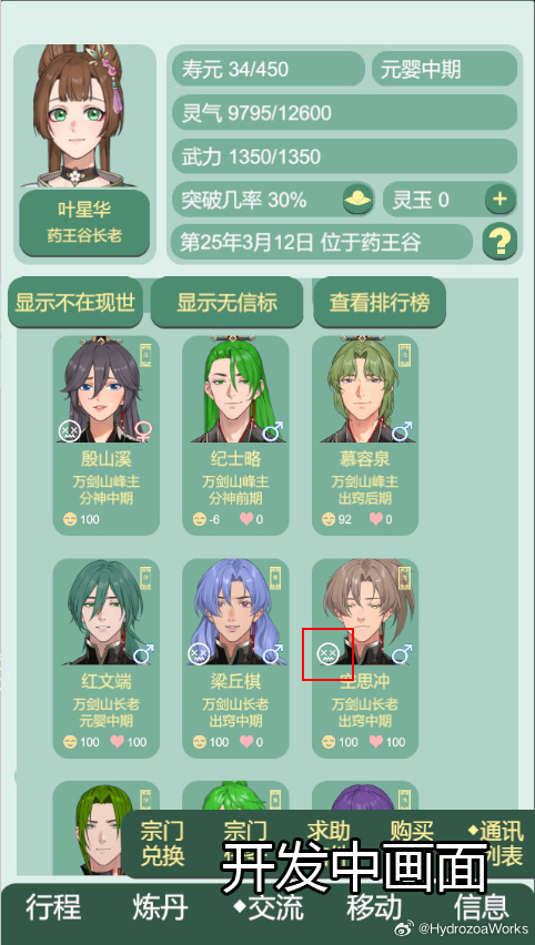 按時(shí)上課,做掌門長(zhǎng)老相關(guān)的宗門任務(wù)可以漲長(zhǎng)老/掌門好感和宗門貢獻(xiàn)值。精力每天恢復(fù)一點(diǎn)。拜訪長(zhǎng)老交好概率會(huì)教給你丹方和給零花錢,好感40以上會(huì)提出收你為徒。拜師可以多一門課學(xué)煉丹和毒藥,還可以組隊(duì)抱大腿下地圖探索采藥,很有用。初期錢和貢獻(xiàn)不夠可以先到宗門兌換買第一張藥林圖后開(kāi)刷,然后在宗門貢獻(xiàn)賣藥材。刷地圖時(shí)sl出大佬入隊(duì)帶你探索下一層可以出更貴的材料。