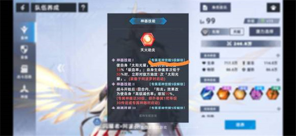 65級后,會開啟神器(專武)系統,可以給角色加三個強力技能和一些屬性,非常重要,這就是為什么前期要每天體力買滿,晚升到65級會很吃虧。