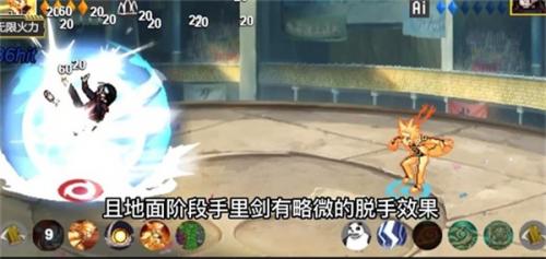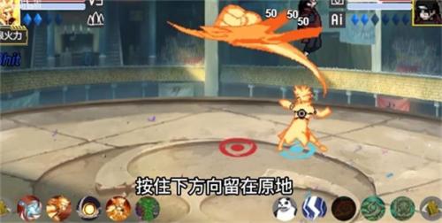 九喇嘛鳴人普攻總共4a,前三a有很長的位移,4a可以抓取敵人并扔出,可以通過搖桿來換位,按下方向會留在原地,按住上方向會移動到空中。