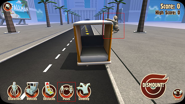 根據(jù)選擇的不同車型,木頭人可以擺的姿勢(shì)也不一樣,姿勢(shì)基本上可以分為車內(nèi)和車外兩種類型,也許玩家會(huì)覺得在車外的姿勢(shì)更加風(fēng)騷和有趣,但是小編推薦最好選擇在車內(nèi)的姿勢(shì)。因?yàn)槿绻x擇木頭人風(fēng)趣地掛在車外,木頭人很容易就會(huì)在中途掉下,不能到達(dá)玩家預(yù)期的位置,從而獲得的分?jǐn)?shù)也會(huì)很少,相對(duì)的,在車內(nèi)的姿勢(shì)則會(huì)更加保險(xiǎn)。