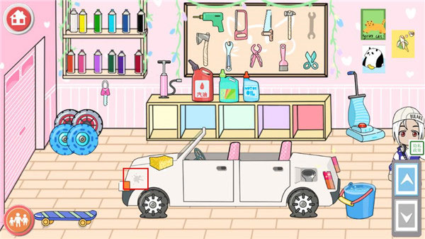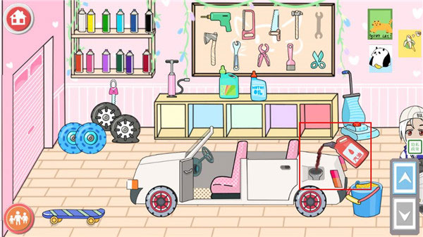 點擊架子上的顏料瓶,可以噴出霧體改變車體顏色。
