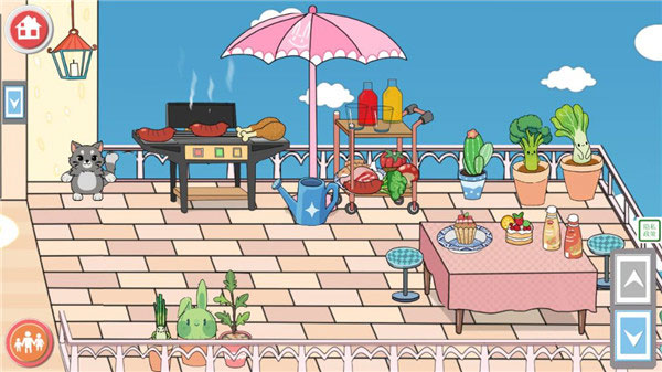 在露臺,可以點擊水壺給植物澆水,還能在這里舉辦生日派對。