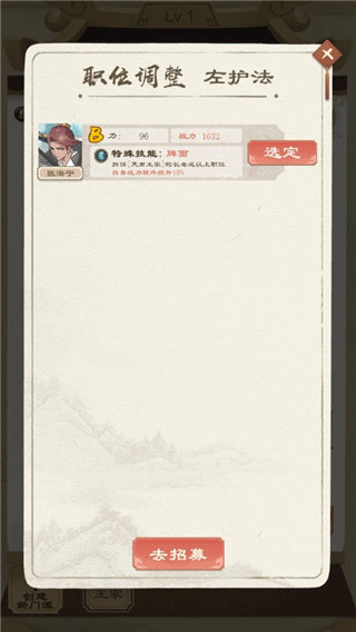 想要建立門派的你開局自然是要先建造一座大殿,但光有大殿太冷清了,先去招募一些英才來加入門派。