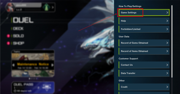 打開游戲王大師決斗,進入游戲之后點擊右上角Submenu;