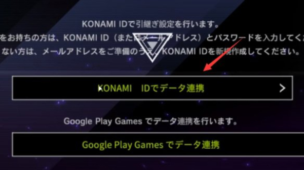 使用Konami賬號引繼:進入數據引繼界面后,選擇使用Konami賬號進行引繼。