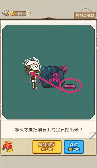 將地面上的那顆大寶石置于錘子之上,便能以硬碰硬,擊碎巖石,從而獲取寶石。