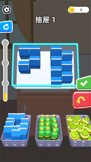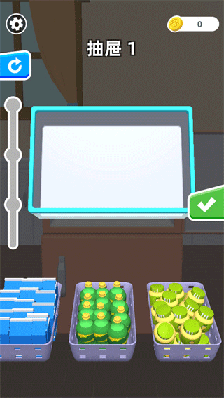4、玩家需要將游戲下方的物品放到抽屜中;