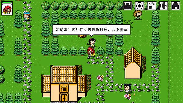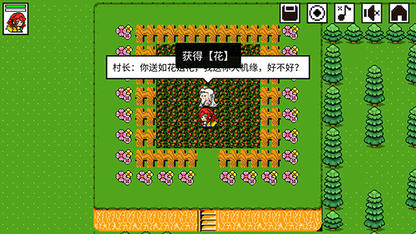 3、在我家隔壁能得知村長在花叢里,我們徑直前往最左上角的花園,在那兒見到村長,村長會給你一朵花。你只需將這朵花送給井旁邊的如花,之后再返回村長那里匯報,就能獲得一個可開啟萬法門的道具。