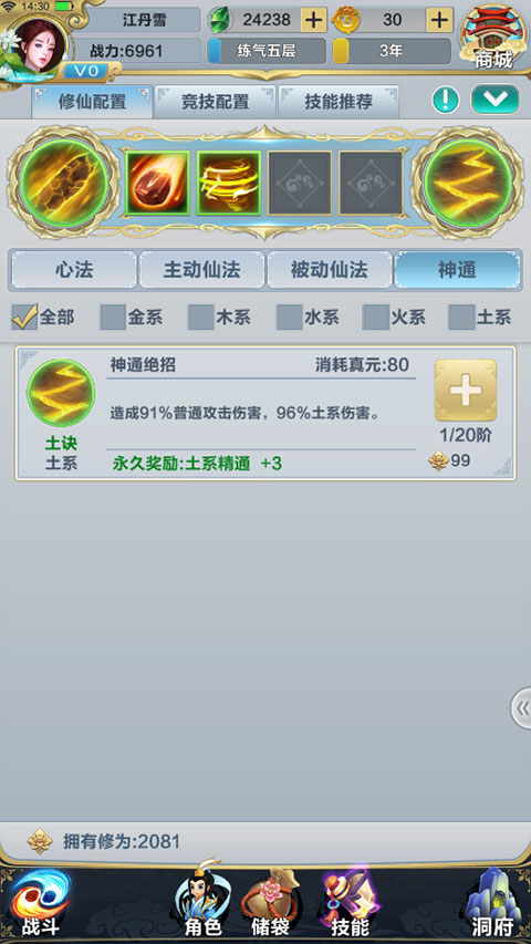 神通是你的大招,消耗仙法積攢的真元來施放,搭配合適的仙法,往往能起到意想不到的效果。
