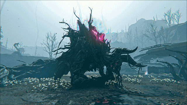 上位者所孽生的妖樹(shù),寄居于巨楔BL155E內(nèi)部的阿米特級(jí)裂隙空間之中。根據(jù)現(xiàn)存的目擊記錄顯示,該裂隙空間乃是2046年無(wú)故消失的薩莫維爾鎮(zhèn)遺址的異空間變體。此內(nèi)部空間整體呈現(xiàn)出寧?kù)o的狀態(tài),但偶爾會(huì)出現(xiàn)局部重力場(chǎng)減弱的現(xiàn)象。上位者孽生妖樹(shù)的行動(dòng)相對(duì)遲緩,然而它的星塵能量會(huì)匯聚形成極具攻擊性的類藤蔓組織。尤其需要留意其背部的人形部分。
