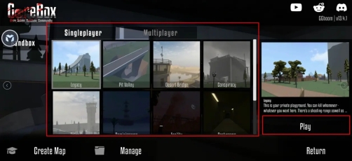 2、進入地圖選擇界面,有多種地圖模式任你選擇,你也可以創建屬于自己的地圖,