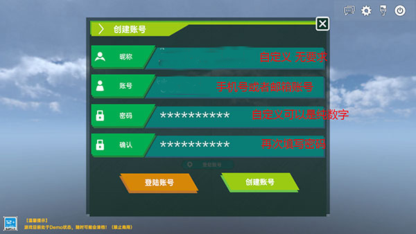 1、首先打開侏羅紀島測試服,點擊“登錄賬號”,首次使用的話就直接點“注冊賬號”,