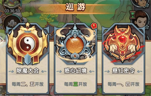 除魔大會(大殿10級解鎖,每周二、五開放):除魔大會有除惡、蕩寇、伏魔三個難度,難度越高獎勵越高,所在門派會積累星數