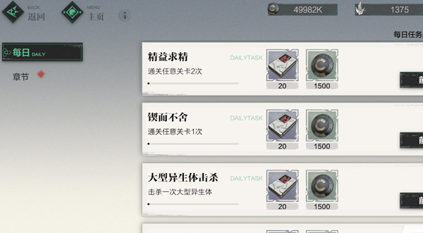 每日任務(wù)是萌新必做的,完成每日任務(wù)除了可以獲得貢獻(xiàn)點(diǎn)數(shù)和訓(xùn)練材料外,還能通過活躍度獲得感知和源晶碎。每日任務(wù)會(huì)在每日凌晨4時(shí)刷新,一定要記得完成。