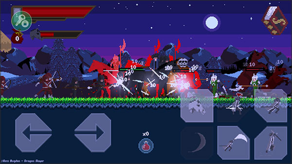 5、利用左邊來操控人物移動,借助右邊來控制攻擊與技能。