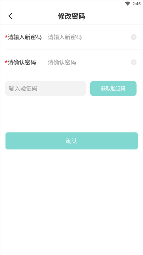 3、最后分別輸入修改后的密碼以及確認密碼,獲取驗證碼,點擊確認即可完成操作。