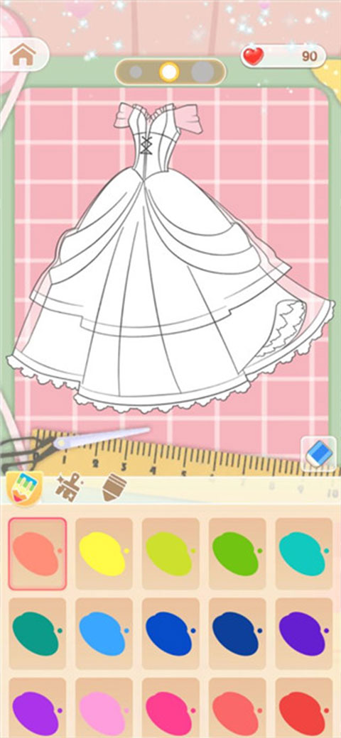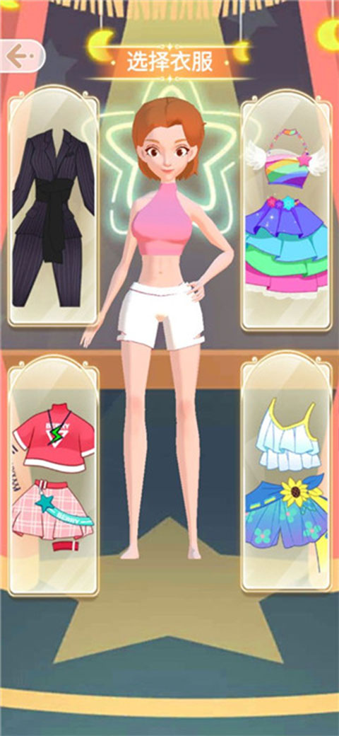 1、踏入游戲后,能夠自由地為公主進行裝扮。無論是頭發、頭飾,還是裙子、衣服、褲子、鞋子、包包,亦或是耳環、項鏈,甚至包括背景,全部都能免費搭配。