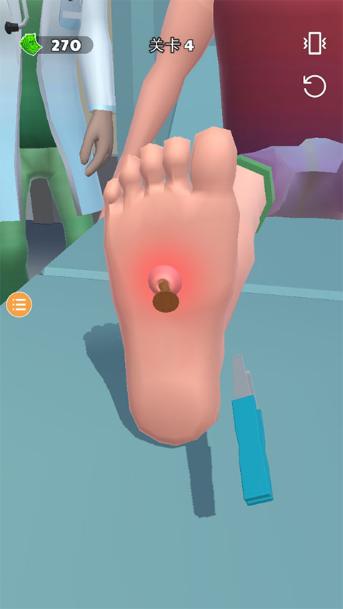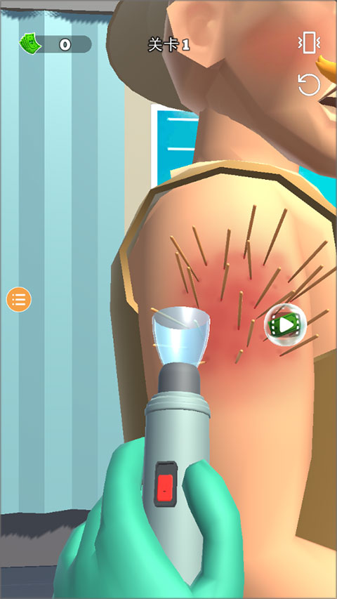 下載安裝好超級醫生官方版,進入游戲,這里我們需要幫助患者將這些刺都拔出來。