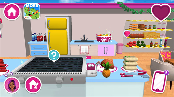 在芭比夢(mèng)幻屋歷險(xiǎn)記游戲中,玩家扮演芭比,并與來(lái)自全球各地的玩家進(jìn)行社交互動(dòng),打造最fashion的房屋。玩家不僅可以自由地探索不同的房間,包括客廳、臥室、浴室和廚房等等,還可以與家具和裝飾互動(dòng),例如清理打掃房間,在廚房做飯,在庭院種植種子等等一系列有趣的活動(dòng),甚至房間內(nèi)有著隱藏的道具和秘密區(qū)域等你前來(lái)探索。