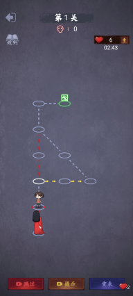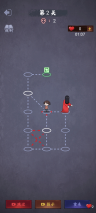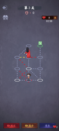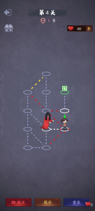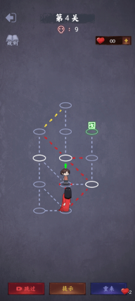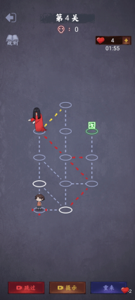 第四關相對復雜些,玩家要讓鬼在第一列與第二列的圓圈環繞一圈,最終回到第一列倒數第二個圓圈處,如此便可抵達終點。