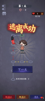 在這一關中,要先把鬼引到第一列的圓圈處,接著依照黃色線的指示躲開監視,最終成功到達目的地就算通過。