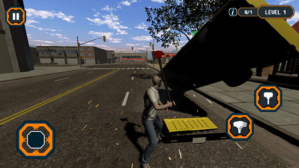 揮動(dòng)斧子對(duì)汽車進(jìn)行攻擊,汽車上有血條,血條為零的時(shí)候汽車報(bào)廢