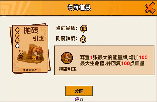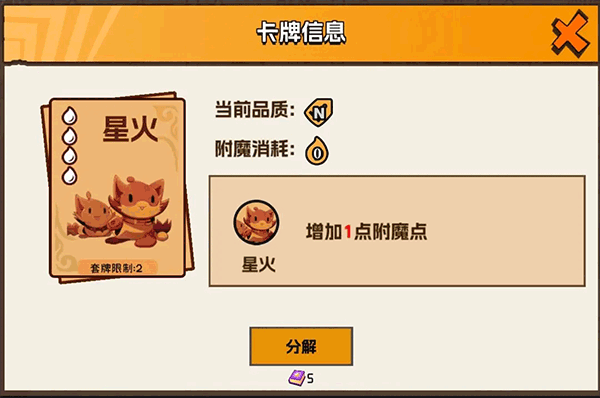 提前準(zhǔn)備可以讓你在下一回合少抽能量卡時(shí)避免棄牌,雖然啟動(dòng)稍慢,但仍不失為一張實(shí)用的卡牌。星火則是0費(fèi)附魔,還能額外獲得1點(diǎn)附魔值,相當(dāng)于穩(wěn)定過(guò)牌的同時(shí)還能賺取一點(diǎn)資源。當(dāng)然,有能力的玩家也可以考慮替換成如意(UR)等能夠獲取附魔點(diǎn)的卡牌。