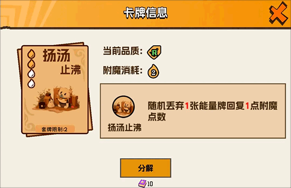 這些法術(shù)卡具備主動(dòng)棄牌的效果,結(jié)合附魔機(jī)制,可以一次性丟棄兩張能量卡。眾所周知,游戲每回合的基礎(chǔ)摸牌為兩張能量卡和一張法術(shù)卡,同時(shí)還能恢復(fù)一點(diǎn)附魔點(diǎn)。這些法術(shù)卡大多消耗兩點(diǎn)附魔點(diǎn),因此需要借助角色三葉的被動(dòng)技能來(lái)實(shí)現(xiàn)高效利用。