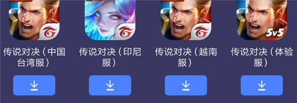 傳說對決目前有 臺服、日服、新加坡服、歐美服、體驗服