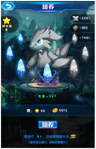 培養:主角在歷險過關后可以獲得星星,消耗一定數量的星星,主角可以提高自己的屬性,培養一定的次數,主角也可以提升到更高質量的精神境界。