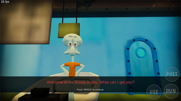 游戲整體營造出陰森封閉的氛圍,蟹堡王內部光線昏暗,墻壁上斑駁陸離。