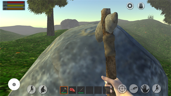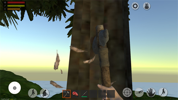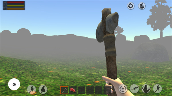 游戲的操作很簡單,只要在物品欄選中想要使用的工具,再點(diǎn)擊右側(cè)的巴掌按鈕即可進(jìn)行各種劈、砍等操作。
