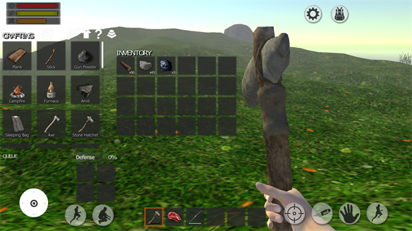 打開背包按鈕可以利用收集的各種材料進(jìn)行合成和創(chuàng)造,巧妙的使用新的工具,能讓你存活的更輕松。