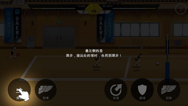 進入比賽界面,最左側的是滑步,接遠處的球時,會用到滑步。