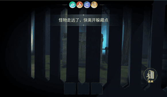 遇到怪物快靠近時(shí)要及時(shí)躲入躲藏點(diǎn),躲避怪物后找到傳送門即可勝利