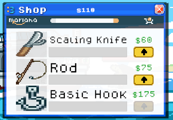 使用右上角的按鈕進(jìn)入商店購買升級您的刀,釣魚線,和魚鉤。