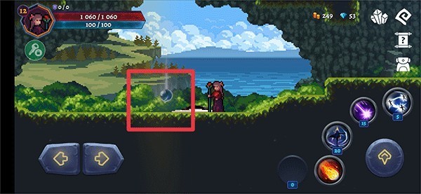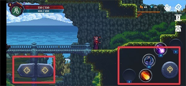 進入游戲后,使用左下角的左右按鈕控制角色移動,右邊的向上按鈕用于跳躍,其他按鈕為角色技能