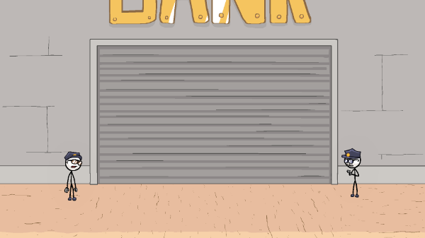 注意:他們拿包后, 你會看到2個守衛在談話,談話結束以后,運鈔車開過來,我們和運鈔車進入到金庫。