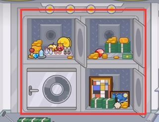 登上銀行的二樓,開啟保險柜。依照圖形的指示,找出鉆石、紅心、星星和貝殼,按照順序逐一放入,保險柜便會開啟,里面藏有諸多寶物。