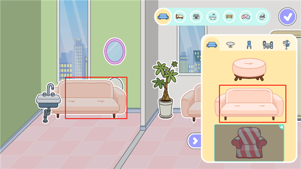 4、其中為用戶提供了極為豐富的家居用品,像沙發、桌子、洗手臺、床、浴缸等,玩家能夠自主挑選心儀的家居。
