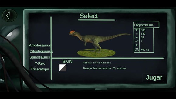 點擊play后可以選擇不同的恐龍,有五種不同的恐龍可以選擇。
