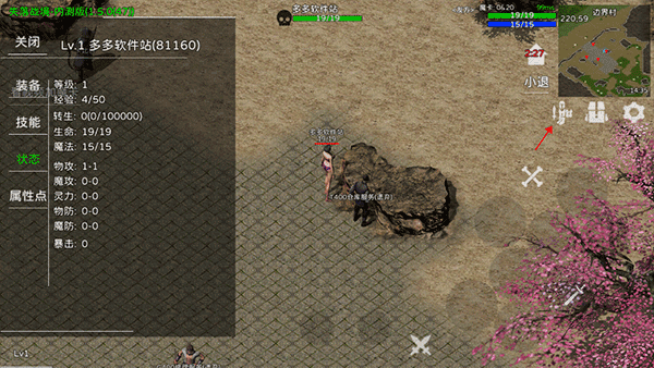 點擊下方箭頭按鈕可以開啟輔助戰斗,也叫自動尋路戰斗