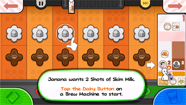 1. 第一單加熱時(shí),可先去做卷(即最后那一步驟)。若買了加速器,等第二單時(shí),能邊按操作邊準(zhǔn)備下一單。有新客人來(lái),先加熱新客人的訂單,同時(shí)繼續(xù)做上一單。要留意加熱進(jìn)度條,牛奶加熱別超過(guò)綠色區(qū)域!