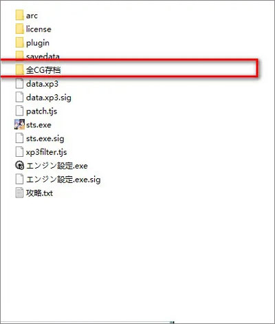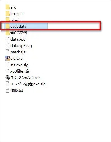 2、看見上面的全cg存檔沒有,打開文件夾,把里面的東西復制出來,打開savedata把文件復制替換進去,打開游戲就能有全cg了。